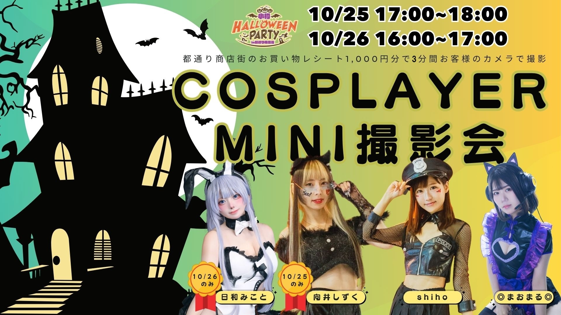商店街加盟店のレシート1,000円分でビンゴカード1枚、ハロウィンクッキー、コスプレイヤー撮影会(先着150名様)