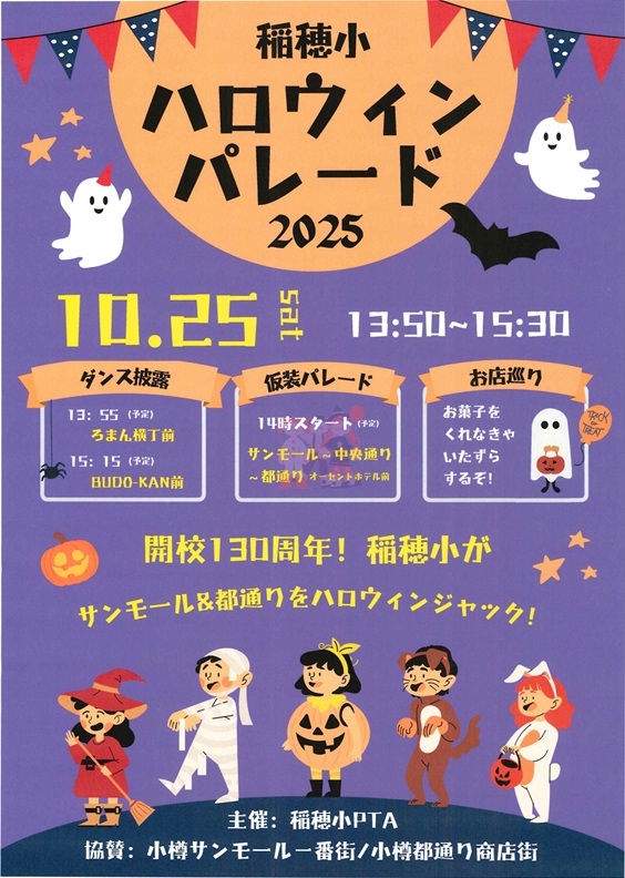 さらに25日は稲穂小学校の生徒さんによるハロウィンパレードやダンスパフォーマンスで商店街がにぎわいます。